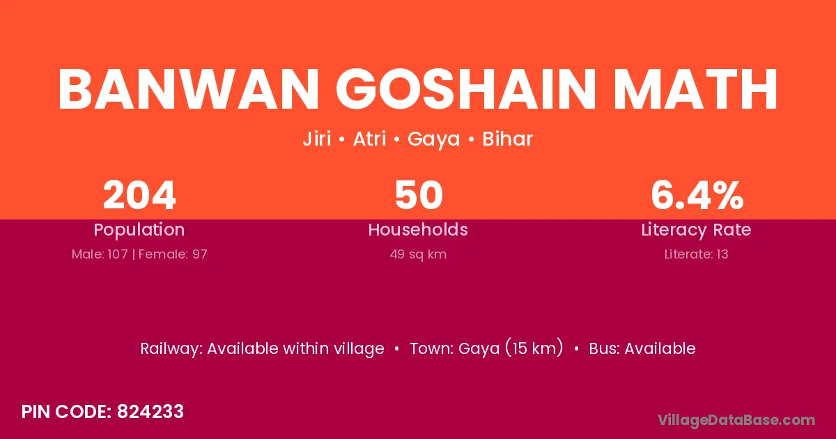 Gaya (15 km) is the nearest town to Banwan Goshain Math village for major economic activities and is located approximately 15 km away.
