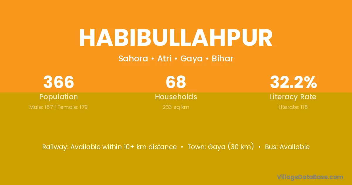 Gaya (30 km) is the nearest town to Habibullahpur village for major economic activities and is located approximately 30 km away.