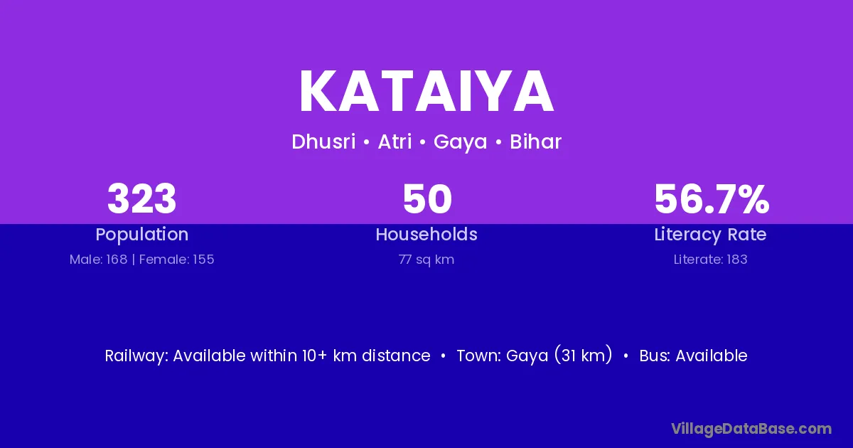 Gaya (31 km) is the nearest town to Kataiya village for major economic activities and is located approximately 31 km away.