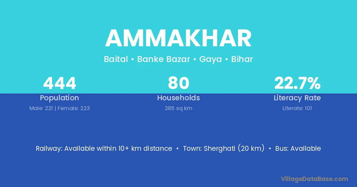 Sherghati (20 km) is the nearest town to Ammakhar village for major economic activities and is located approximately 20 km away.
