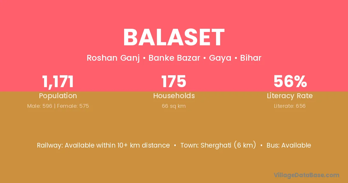 Sherghati (6 km) is the nearest town to Balaset village for major economic activities and is located approximately 6 km away.