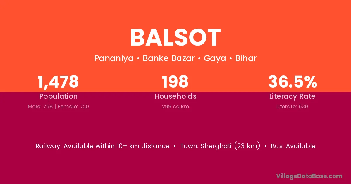Sherghati (23 km) is the nearest town to Balsot village for major economic activities and is located approximately 23 km away.