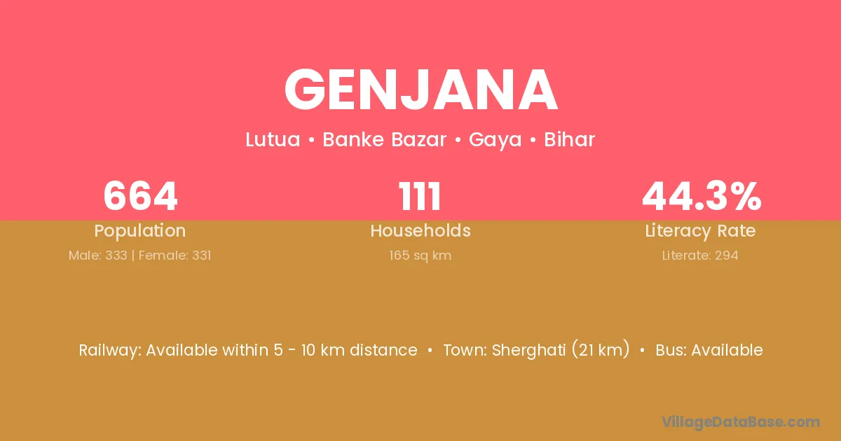 Sherghati (21 km) is the nearest town to Genjana village for major economic activities and is located approximately 21 km away.