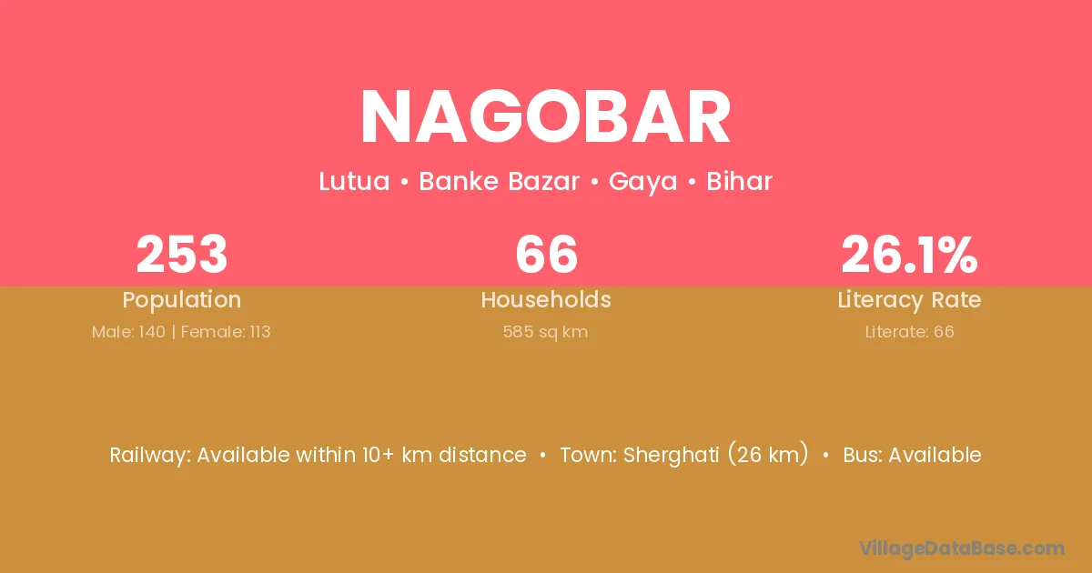 Sherghati (26 km) is the nearest town to Nagobar village for major economic activities and is located approximately 26 km away.