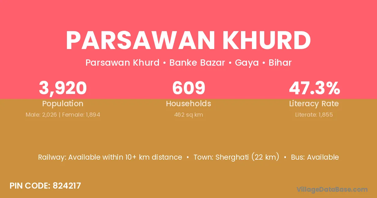 Sherghati (22 km) is the nearest town to Parsawan Khurd village for major economic activities and is located approximately 22 km away.