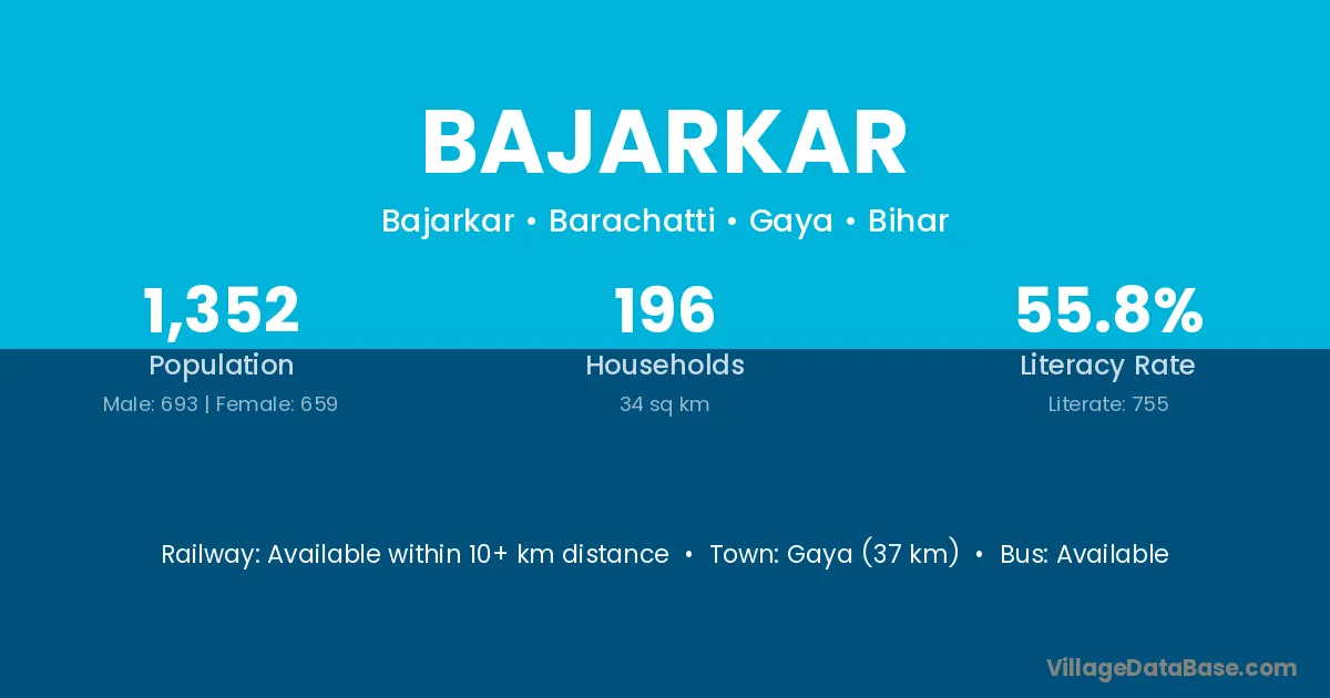 Gaya (37 km) is the nearest town to Bajarkar village for major economic activities and is located approximately 37 km away.