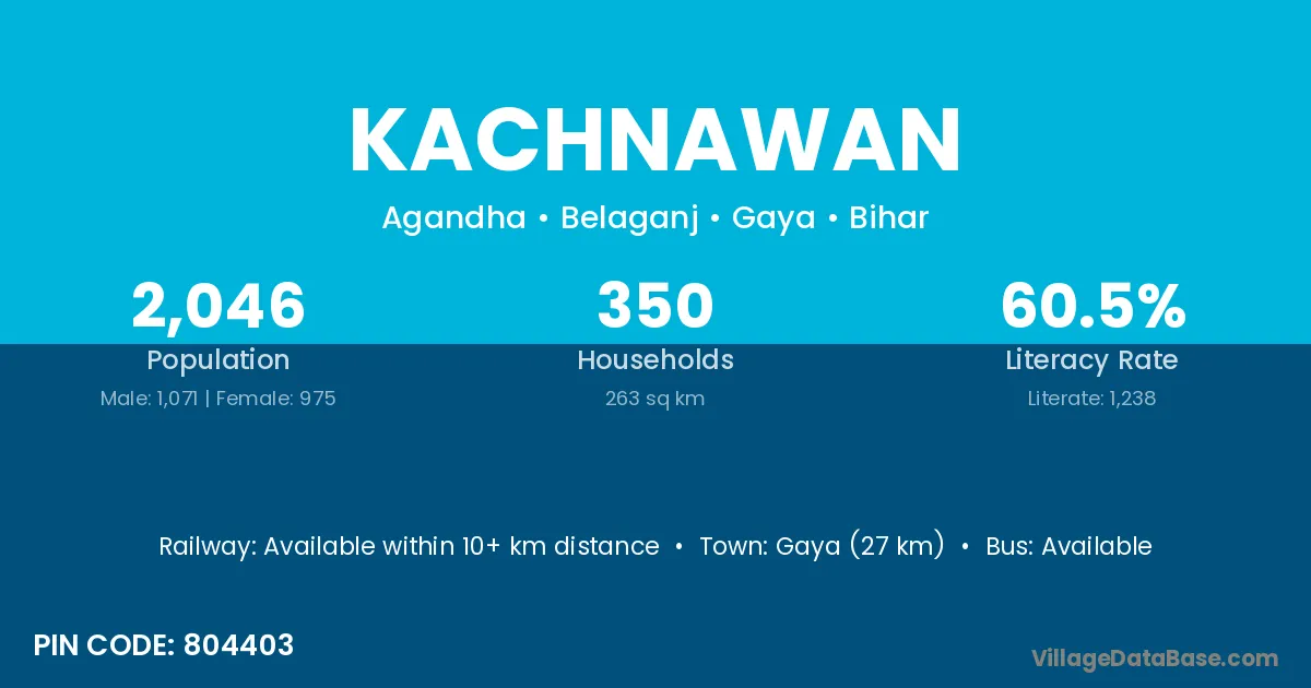 Gaya (27 km) is the nearest town to Kachnawan village for major economic activities and is located approximately 27 km away.
