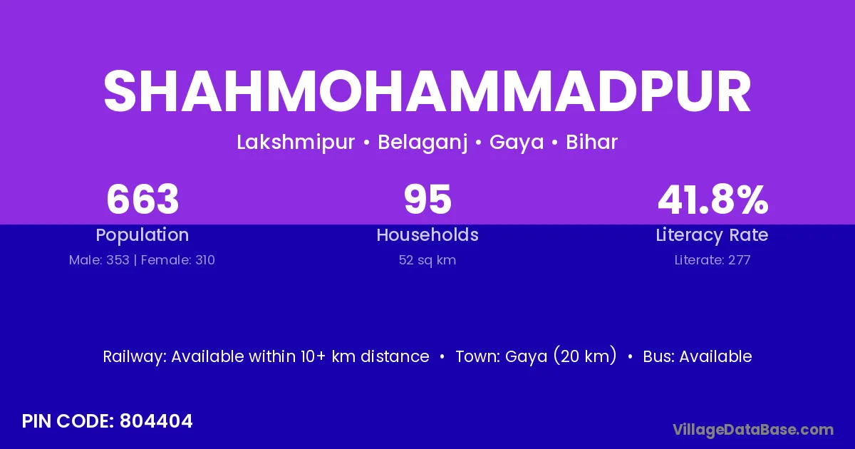 Gaya (20 km) is the nearest town to Shahmohammadpur village for major economic activities and is located approximately 20 km away.