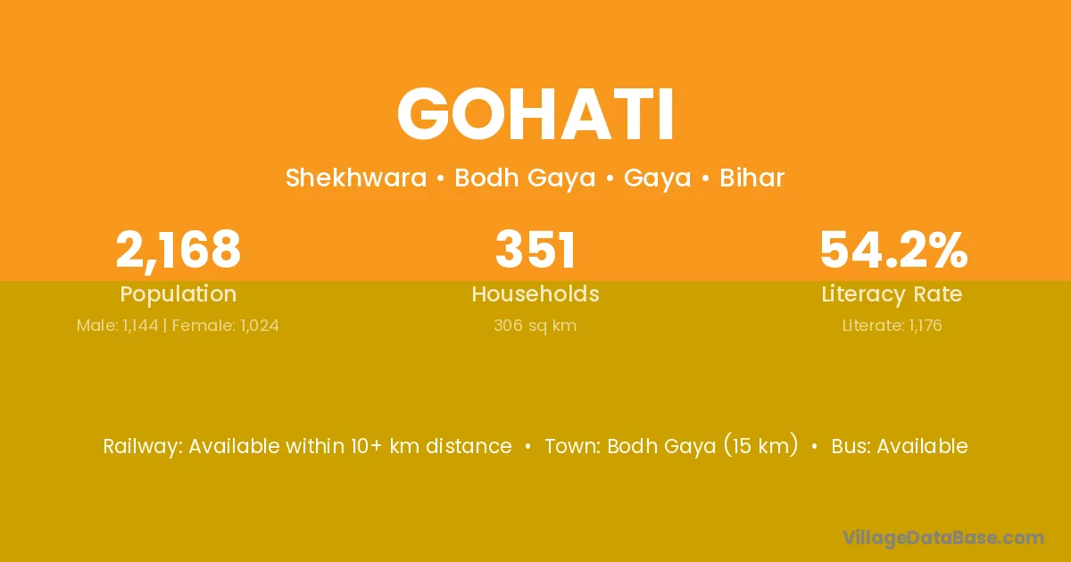 Bodh Gaya (15 km) is the nearest town to Gohati village for major economic activities and is located approximately 15 km away.