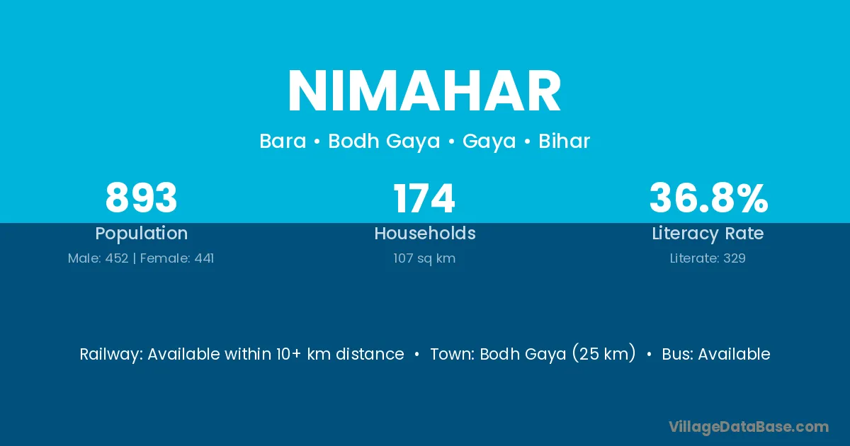 Bodh Gaya (25 km) is the nearest town to Nimahar village for major economic activities and is located approximately 25 km away.