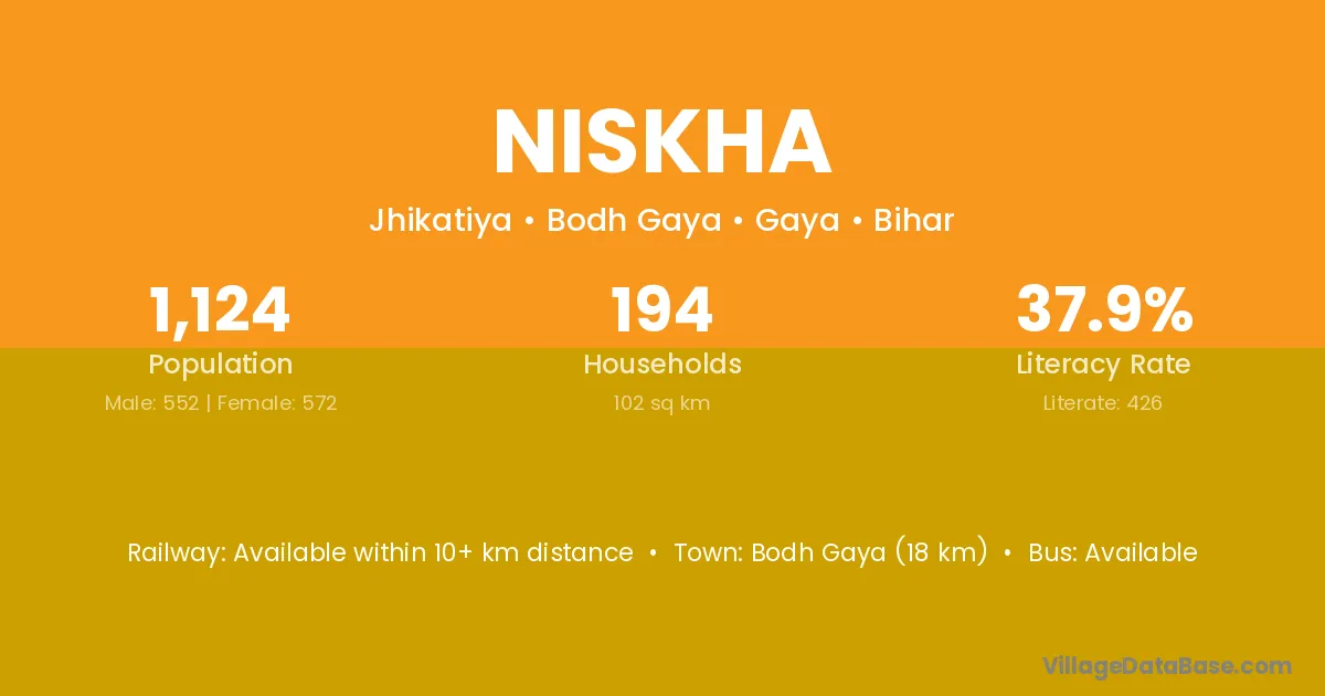 Bodh Gaya (18 km) is the nearest town to Niskha village for major economic activities and is located approximately 18 km away.
