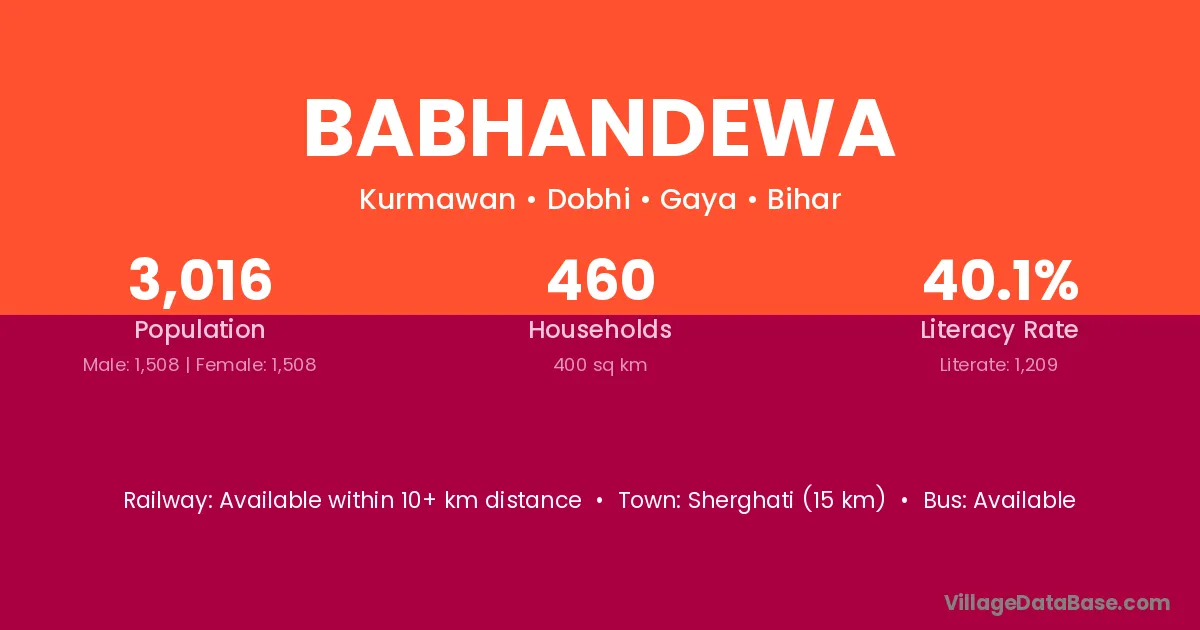 Sherghati (15 km) is the nearest town to Babhandewa village for major economic activities and is located approximately 15 km away.