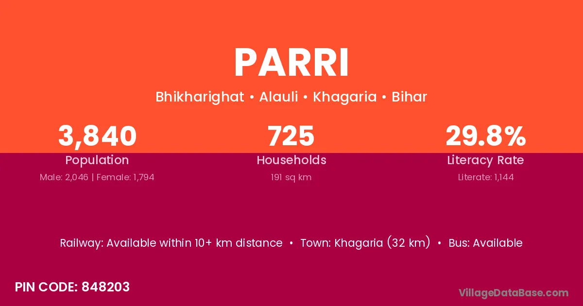 Sherghati (20 km) is the nearest town to Parri village for major economic activities and is located approximately 20 km away.
