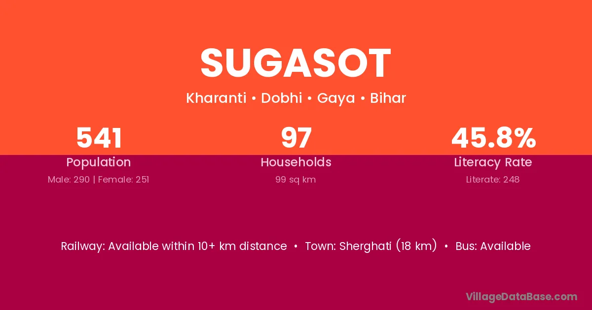 Sherghati (18 km) is the nearest town to Sugasot village for major economic activities and is located approximately 18 km away.