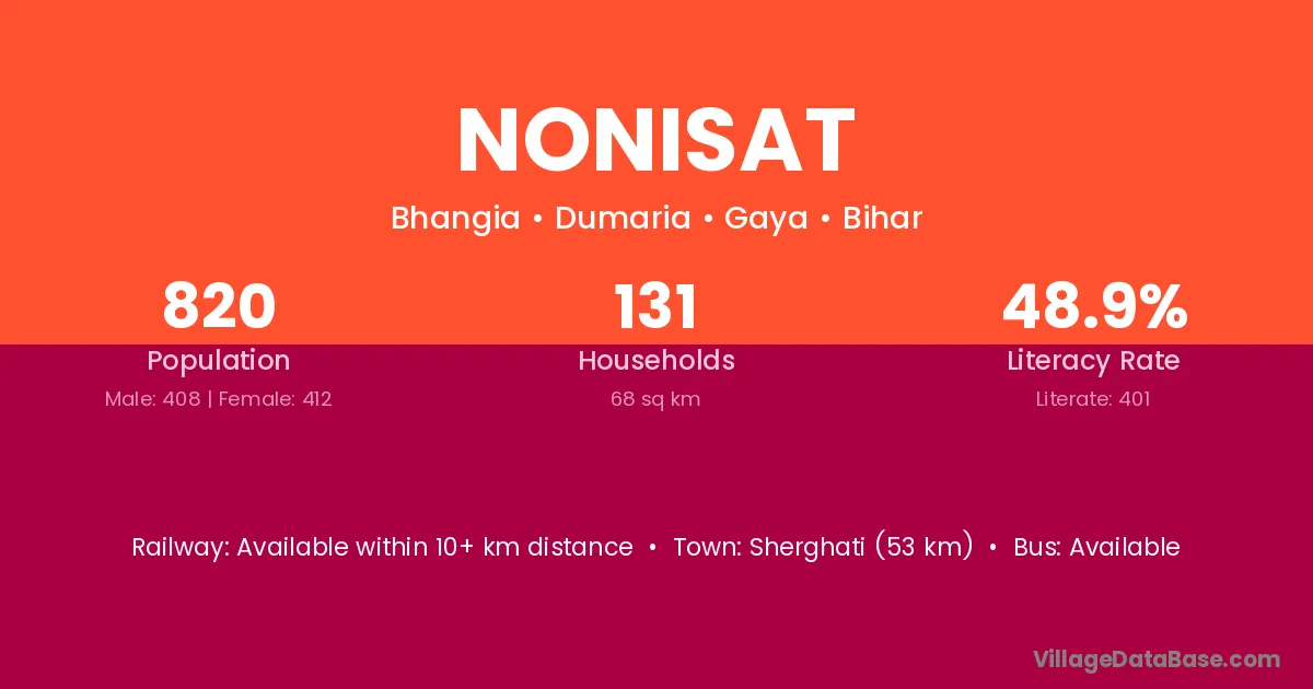 Sherghati (53 km) is the nearest town to Nonisat village for major economic activities and is located approximately 53 km away.