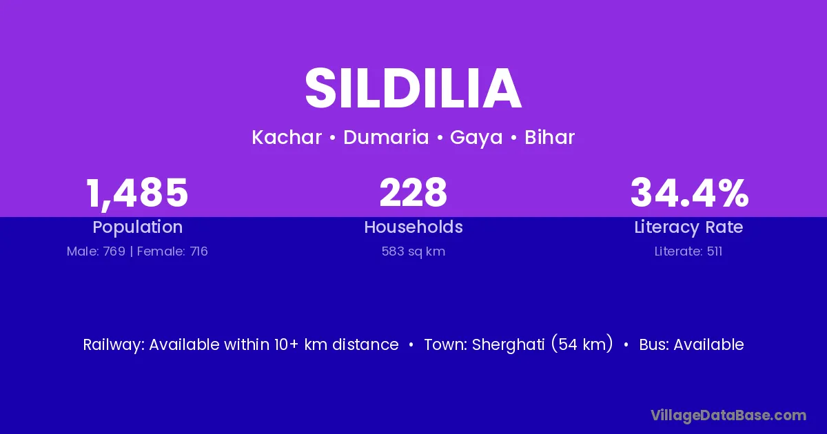 Sherghati (54 km) is the nearest town to Sildilia village for major economic activities and is located approximately 54 km away.
