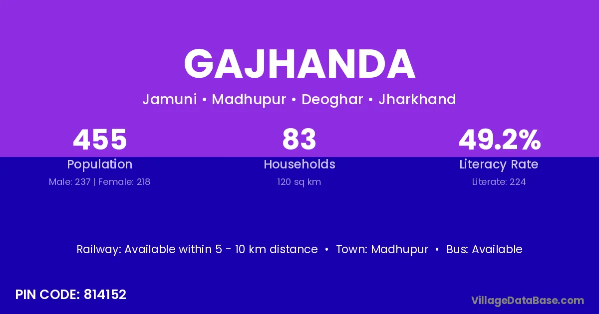 Gaya (50 km) is the nearest town to Gajhanda village for major economic activities and is located approximately 50 km away.