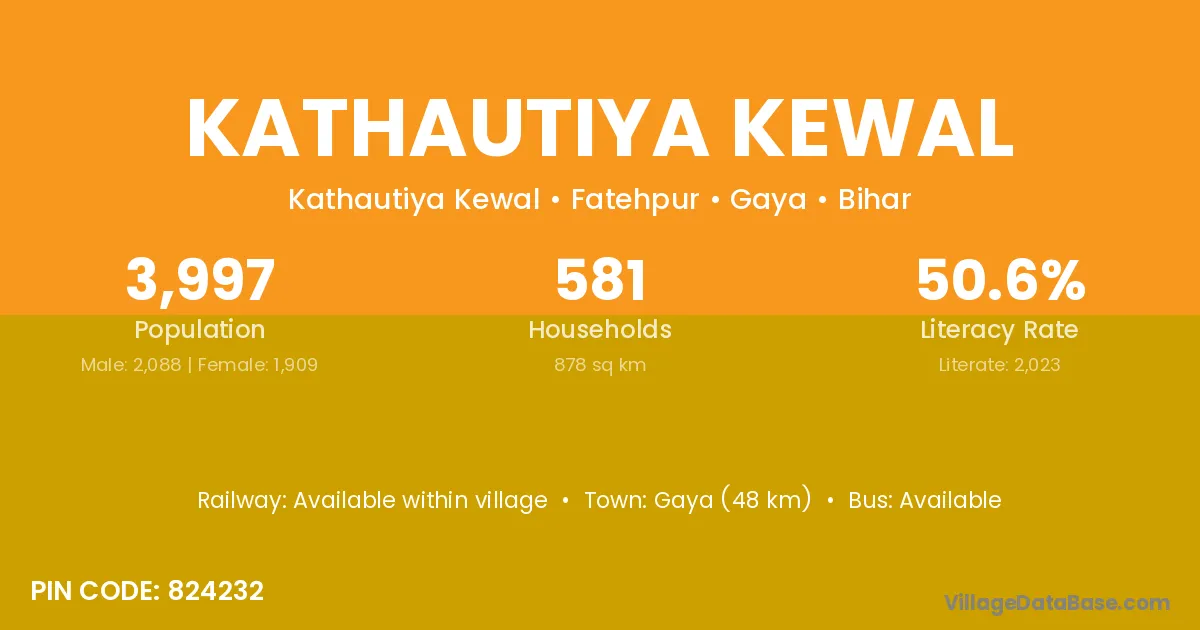 Gaya (48 km) is the nearest town to Kathautiya Kewal village for major economic activities and is located approximately 48 km away.