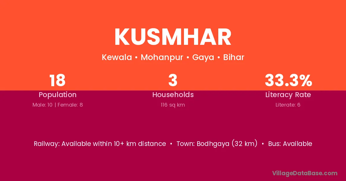 Gaya (40 km) is the nearest town to Kusmhar village for major economic activities and is located approximately 40 km away.