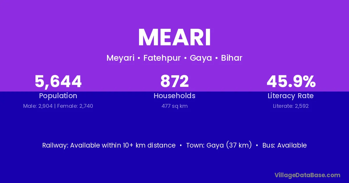 Gaya (37 km) is the nearest town to Meari village for major economic activities and is located approximately 37 km away.