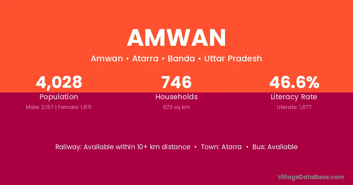 Amwan village has a total population of 1,060 people, of which 527 are males and 533 are females.