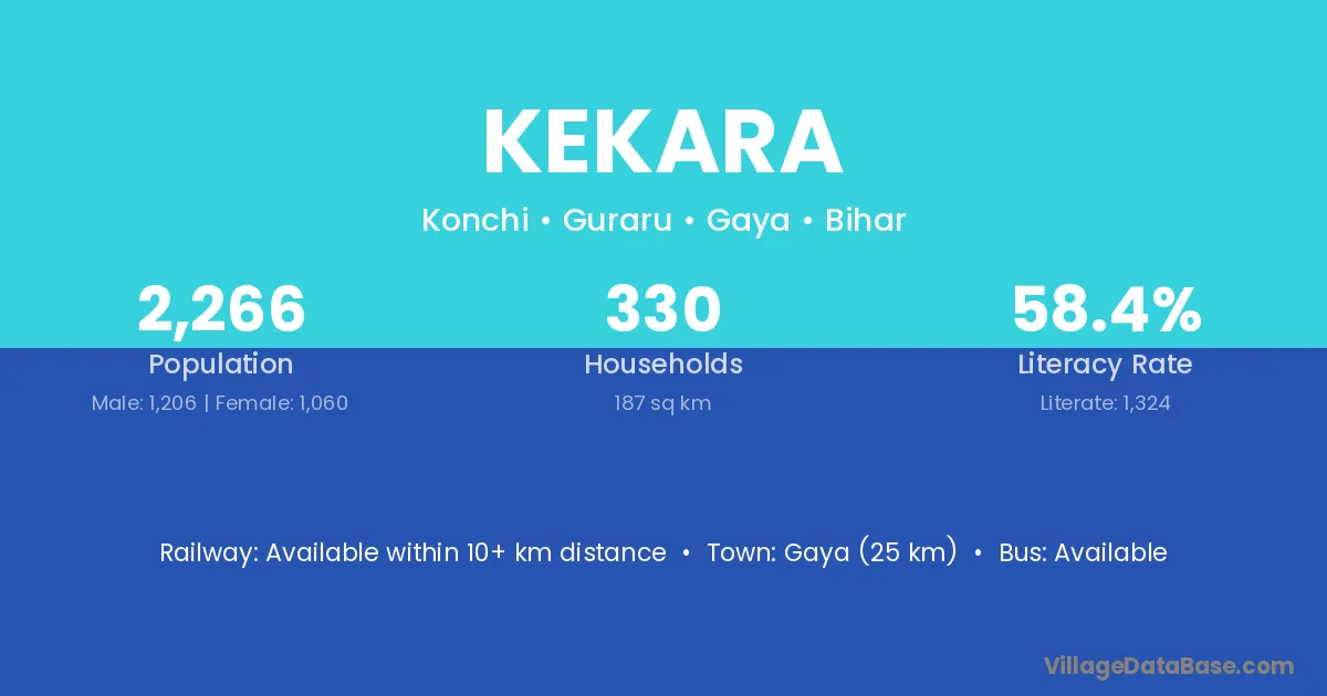 Gaya (25 km) is the nearest town to Kekara village for major economic activities and is located approximately 25 km away.