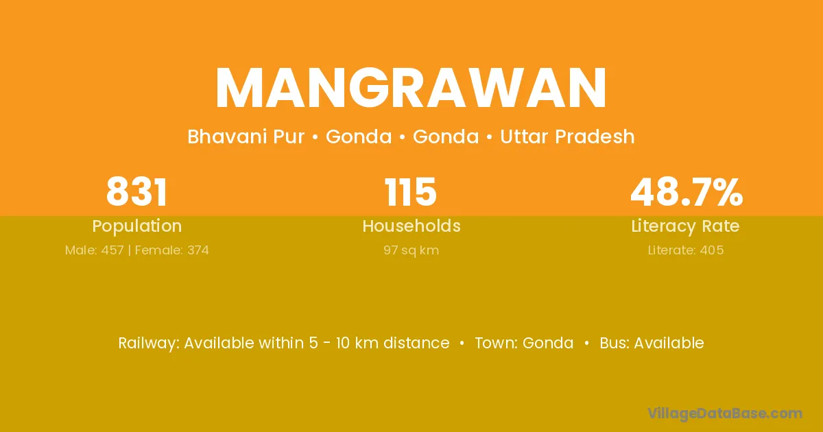 Mangrawan village has a total population of 2,372 people, of which 1,229 are males and 1,143 are females.