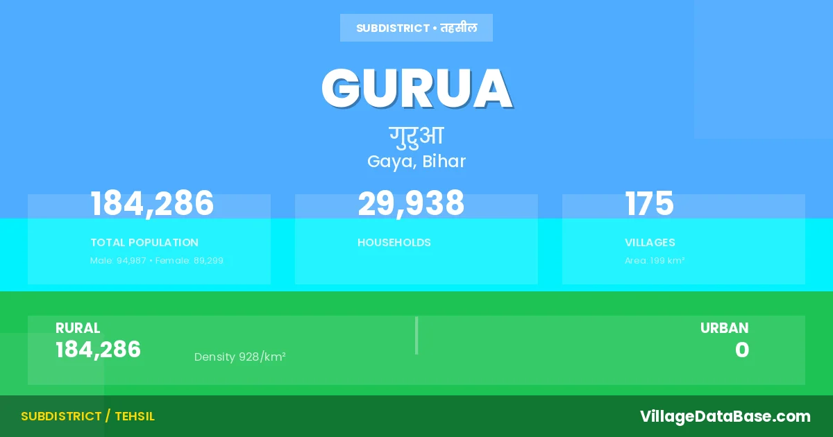 Gurua is a town and Subdivision in the Gaya district of the Bihar. In India, a Subdivision is a subdivision of a district responsible for the administration and revenue collection of a specific area within the district. Subdivisions play a crucial role in the local governance structure, contributing significantly to the development and administration of their communities.