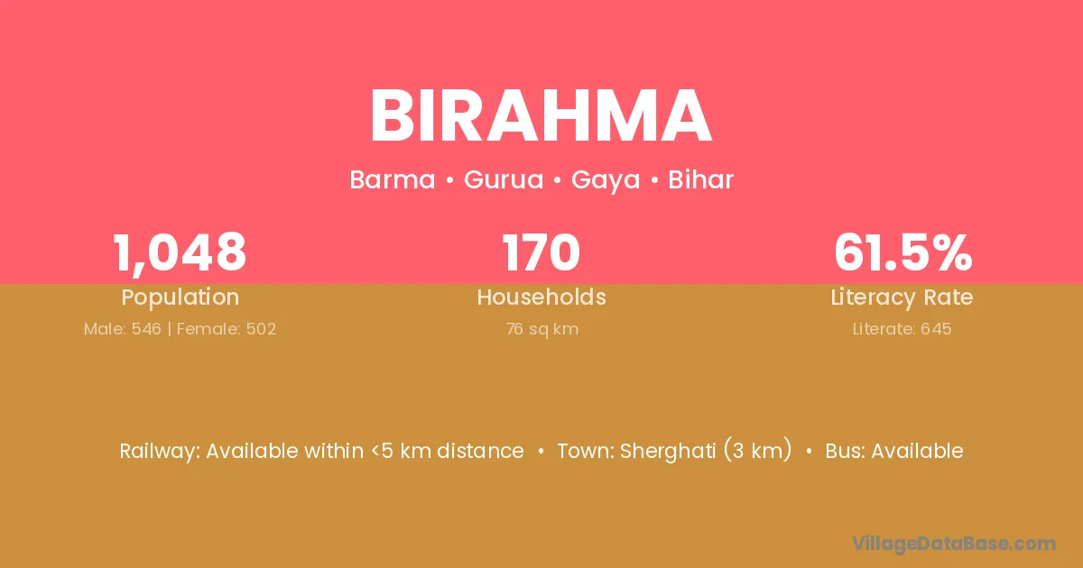 Sherghati (3 km) is the nearest town to Birahma village for major economic activities and is located approximately 3 km away.