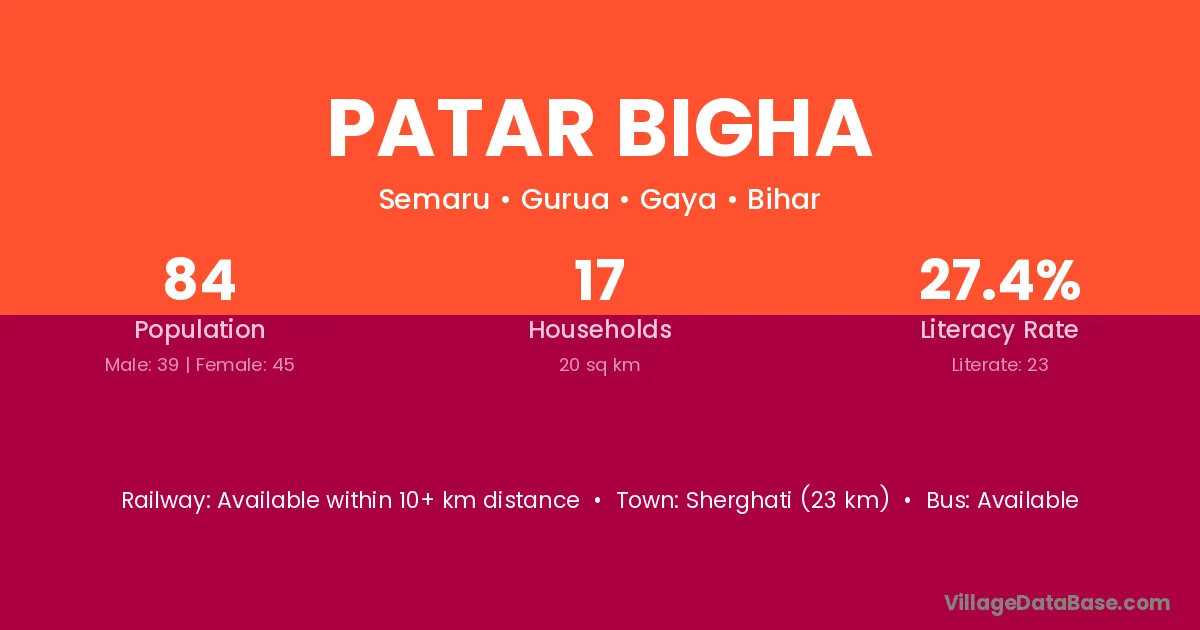 Sherghati (23 km) is the nearest town to Patar Bigha village for major economic activities and is located approximately 23 km away.