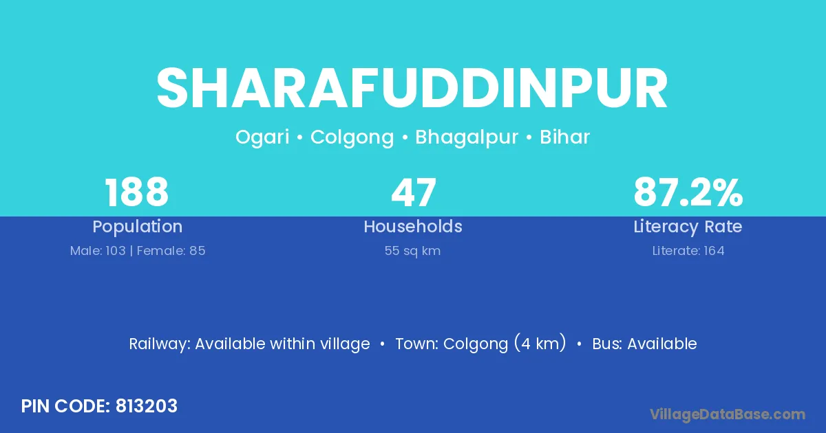 Sherghati (21 km) is the nearest town to Sharafuddinpur village for major economic activities and is located approximately 21 km away.