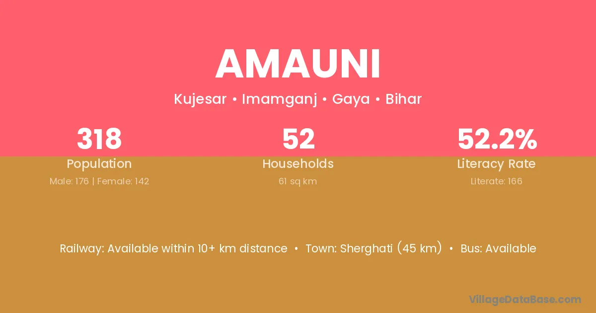 Amauni village has a total population of 318 people, of which 176 are males and 142 are females.