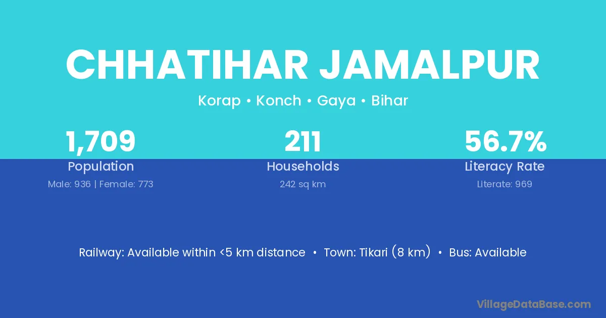 Tikari (8 km) is the nearest town to Chhatihar Jamalpur village for major economic activities and is located approximately 8 km away.