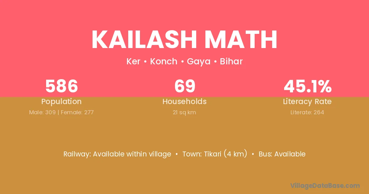 Kailash Math village is located in the Konch Subdivision of the Gaya district in Bihar .