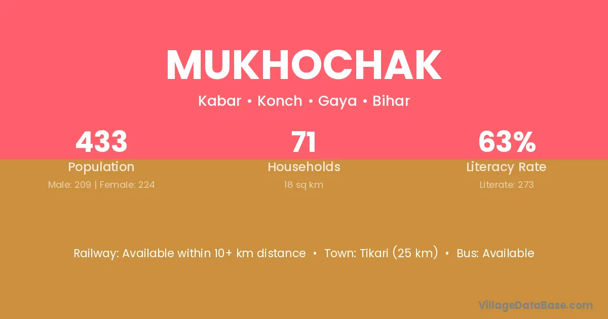 Tikari (25 km) is the nearest town to Mukhochak village for major economic activities and is located approximately 25 km away.
