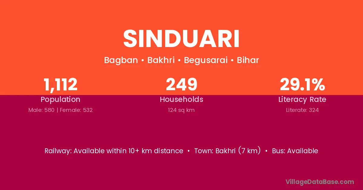 Tikari (10 km) is the nearest town to Sinduari village for major economic activities and is located approximately 10 km away.