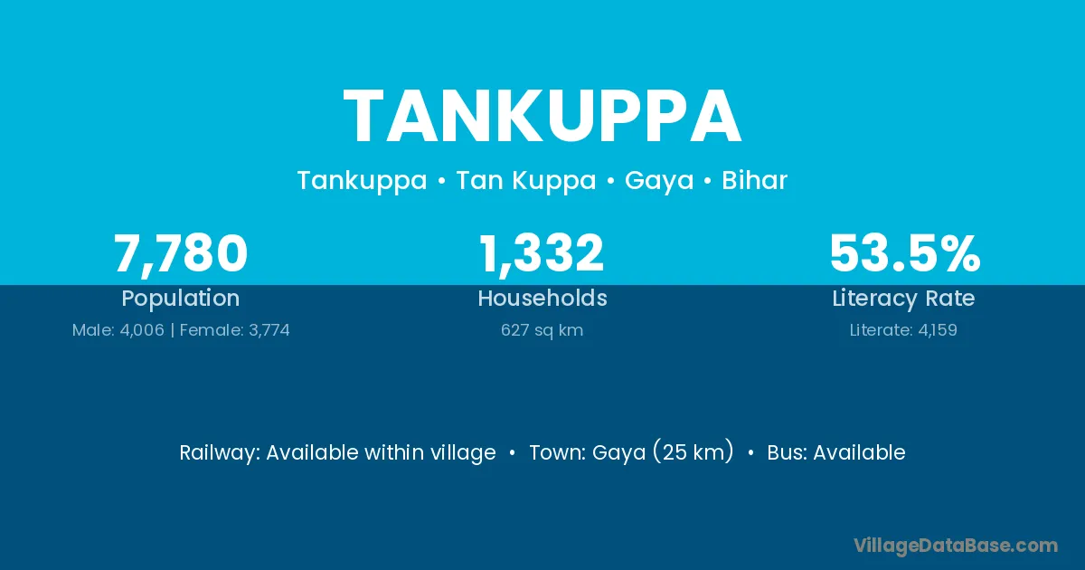 Tikari (18 km) is the nearest town to Tankuppa village for major economic activities and is located approximately 18 km away.