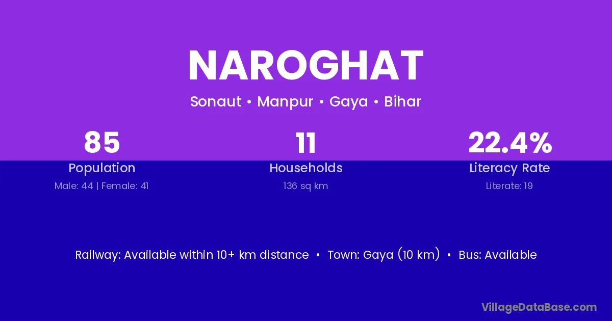 Gaya (10 km) is the nearest town to Naroghat village for major economic activities and is located approximately 10 km away.