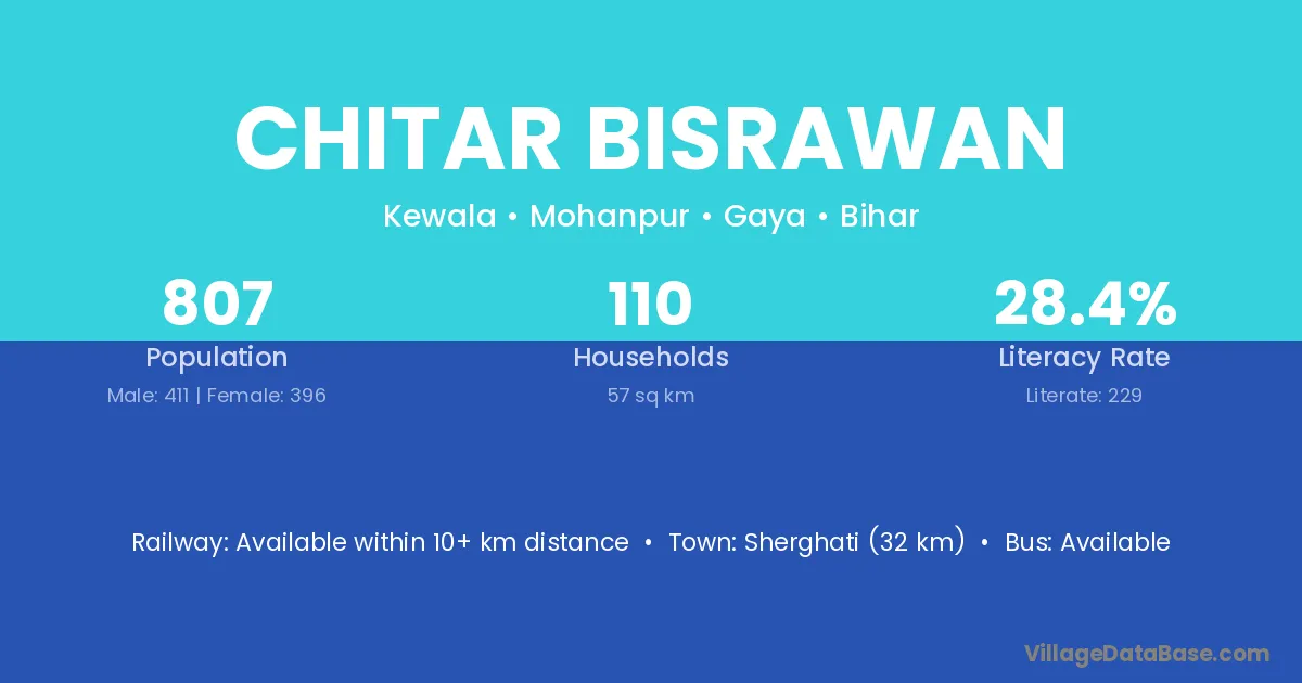 Chitar Bisrawan village has a total population of 807 people, of which 411 are males and 396 are females.