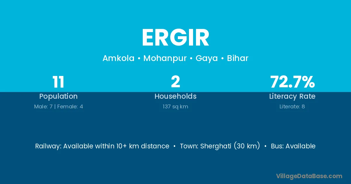 Sherghati (30 km) is the nearest town to Ergir village for major economic activities and is located approximately 30 km away.
