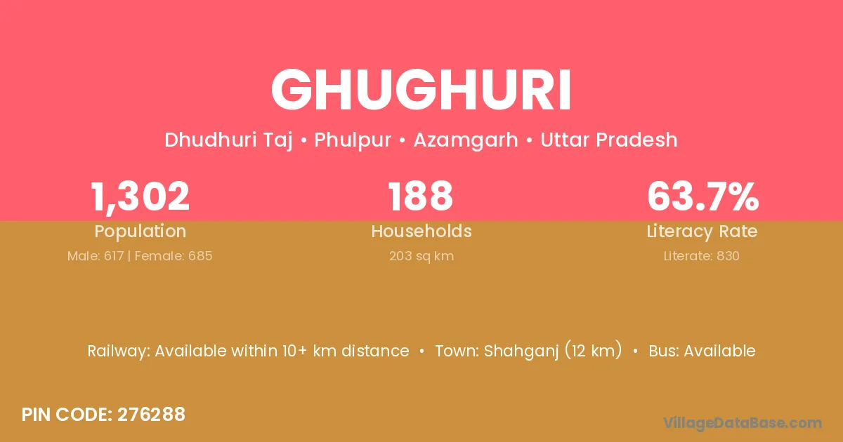 Ghughuri village has a total population of 618 people, of which 315 are males and 303 are females.
