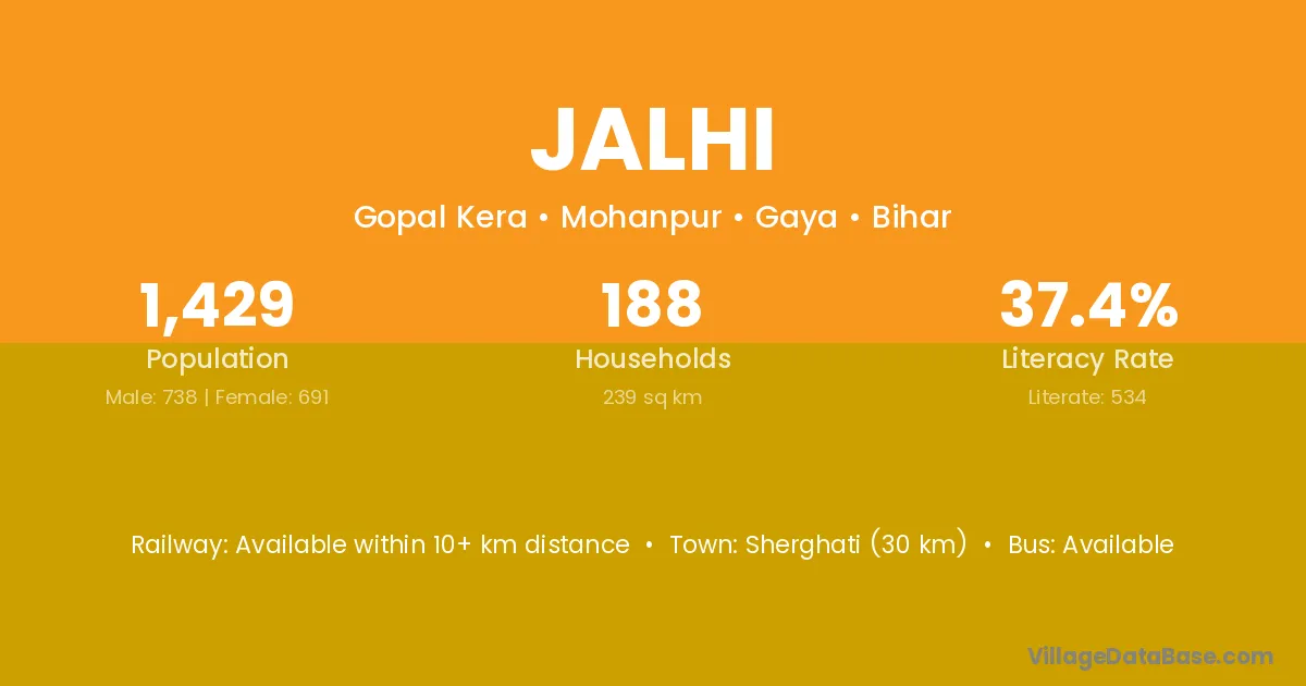 Sherghati (30 km) is the nearest town to Jalhi village for major economic activities and is located approximately 30 km away.