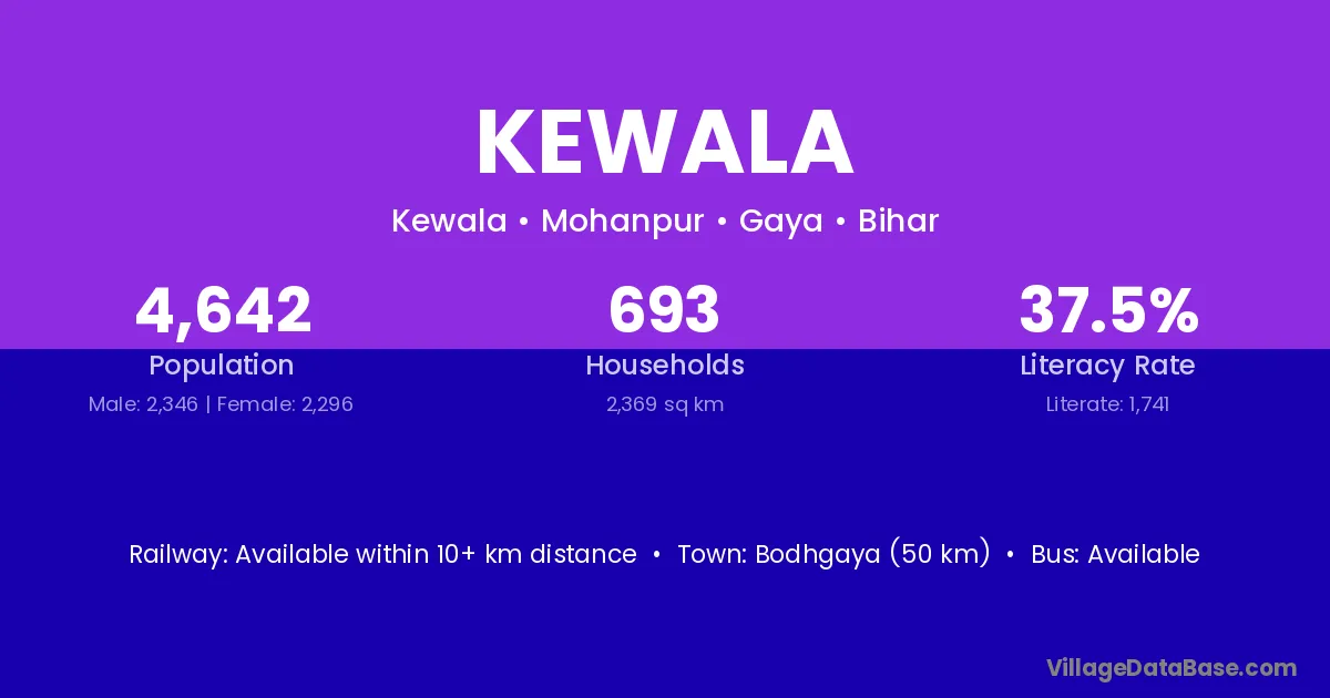 Bodhgaya (50 km) is the nearest town to Kewala village for major economic activities and is located approximately 50 km away.