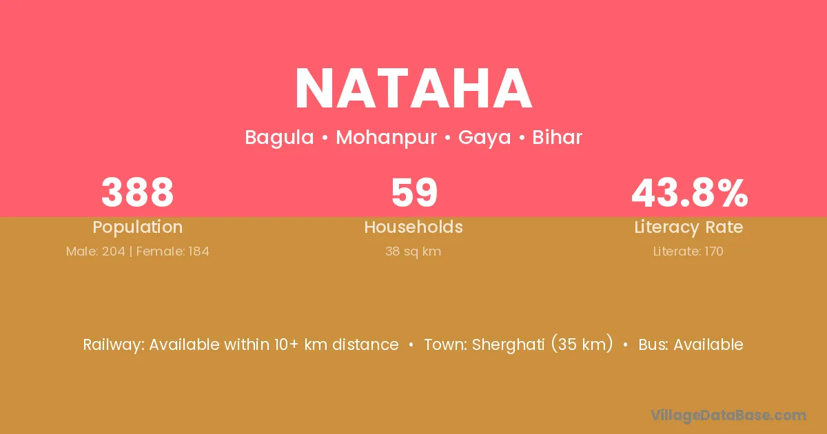 Sherghati (35 km) is the nearest town to Nataha village for major economic activities and is located approximately 35 km away.