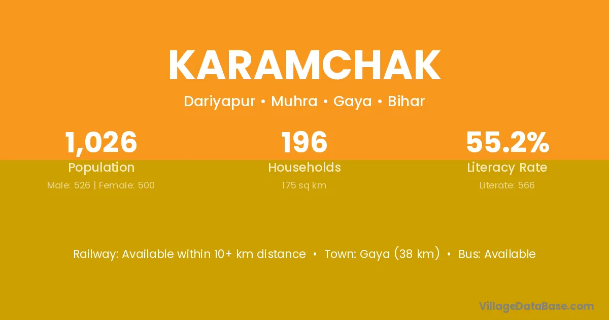 Gaya (38 km) is the nearest town to Karamchak village for major economic activities and is located approximately 38 km away.