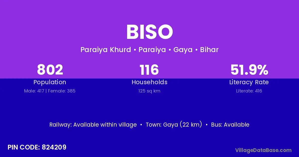 Biso village is located in the Paraiya Subdivision of the Gaya district in Bihar .