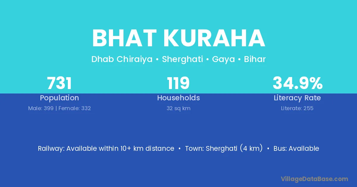 Sherghati (4 km) is the nearest town to Bhat Kuraha village for major economic activities and is located approximately 4 km away.