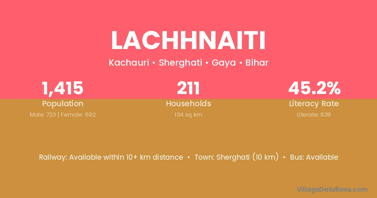 Sherghati (10 km) is the nearest town to Lachhnaiti village for major economic activities and is located approximately 10 km away.