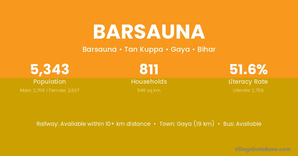 Gaya (19 km) is the nearest town to Barsauna village for major economic activities and is located approximately 19 km away.