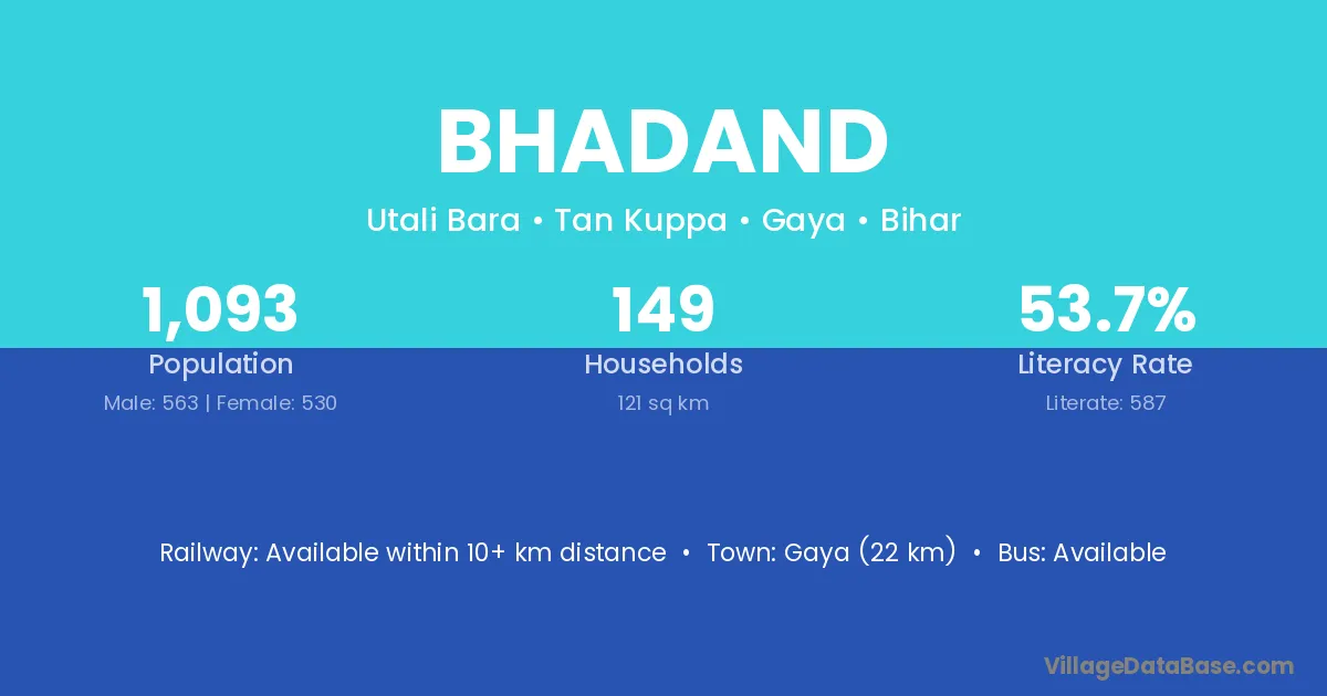 Gaya (22 km) is the nearest town to Bhadand village for major economic activities and is located approximately 22 km away.